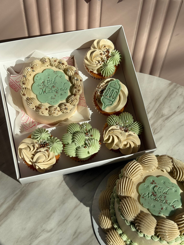 Vier Eid met onze feestelijke zoetigheden! Van bento cakes en cupcakes tot mini round cakes, perfect om te delen met familie en vrienden. Kies uit heerlijke smaken zoals vanille en red velvet, prachtig versierd in Eid-stijl. Een zoete afsluiting van de Ramadan!